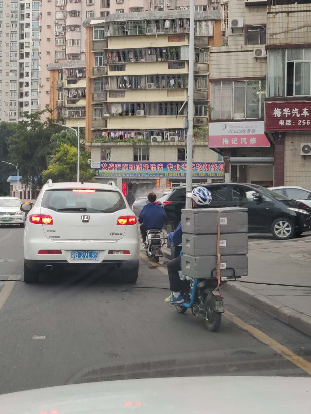 草埔,一辆满载的电动车摇摇摆摆的在马路中间危险骑行。