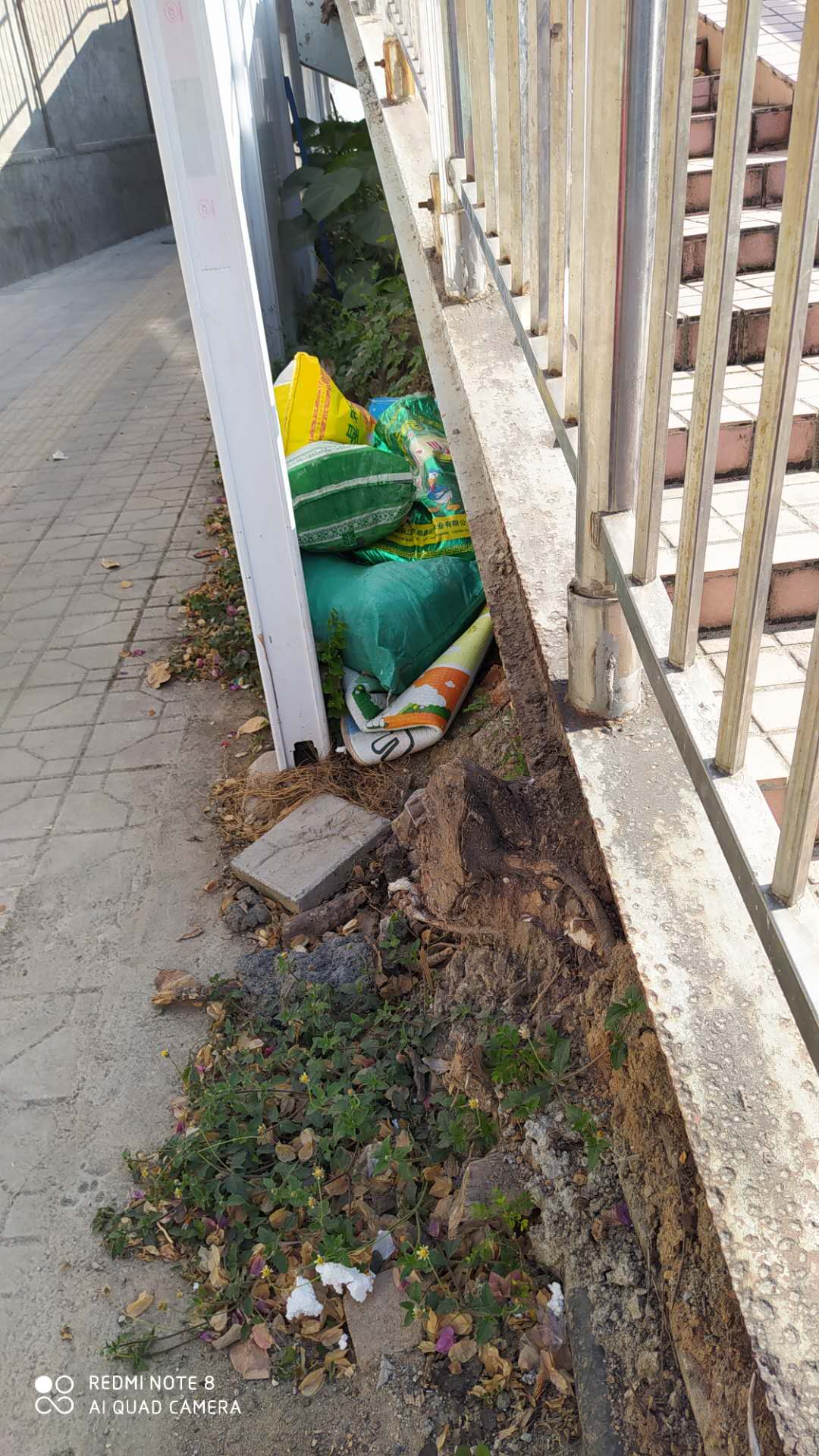 好几袋垃圾就这样丢在人行天桥下,如果下大雨的话水都流不出去