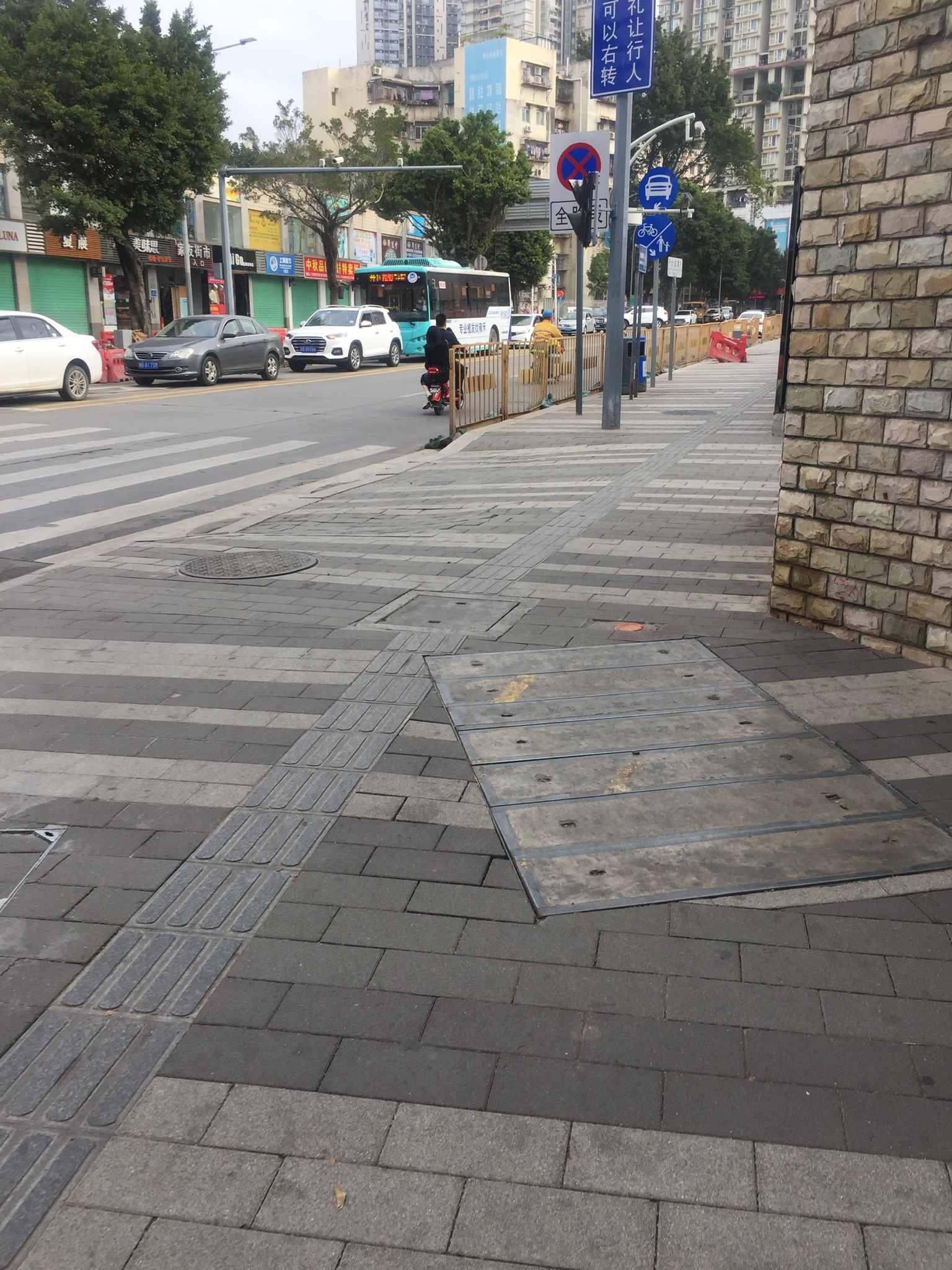 电单车骑行者不戴头盔,行驶在机动车道上。