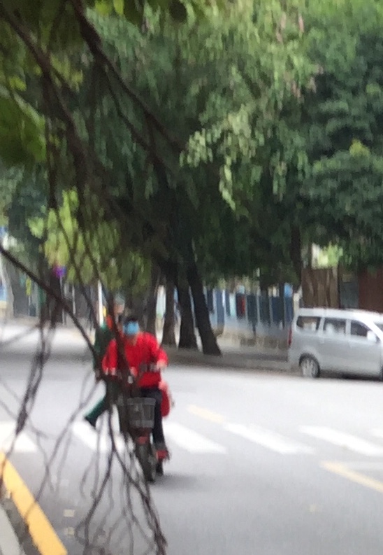 【随手拍】电单车骑行者不戴头盔,行驶在机动车道上。