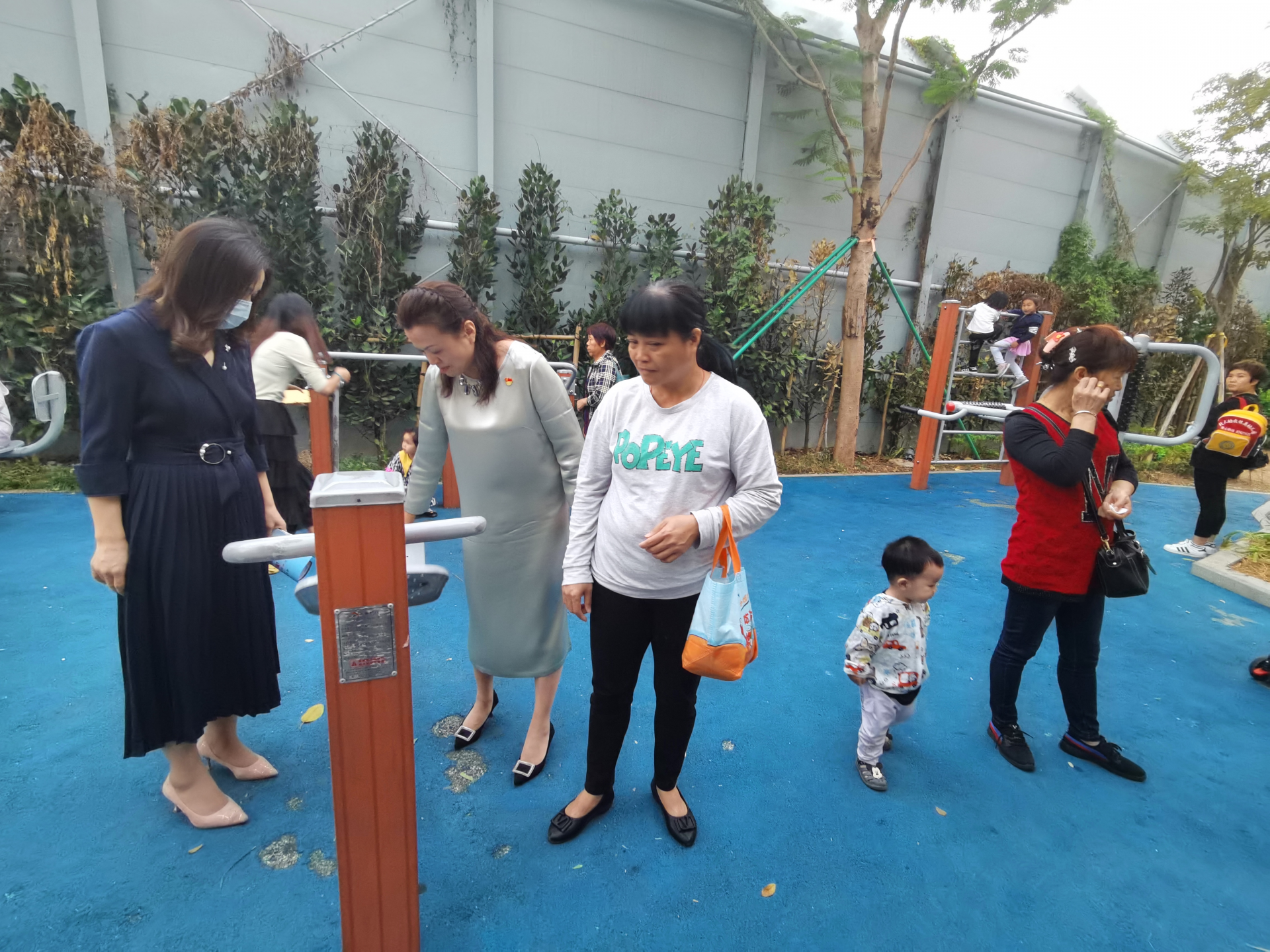 看着这个面积约2500平方米的广场,很难想象,两年前,这里还是一片杂草丛生、蚊蝇飞舞、堆满建筑垃圾的三角荒地。王芳回忆说,2017年她上任后盘查社区资产时发现,这个地块属于广深铁路股份有限公司所有,已闲置几十年了,不仅不符合铁路护路的规定要求,也对社区环境造成了污染,是一个街道城管部门与业主协调治理的老大难问题。如果能把这块荒地利用起来给居民提供活动空间,那就两全其美了。王芳随后积极和广深铁路协调,仅用3个月就与广深铁路签订了长期免费使用的协议。