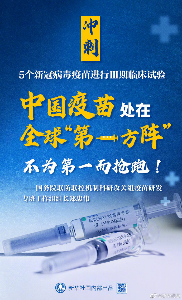 相关方面正在继续科学严谨推进疫苗Ⅲ期临床试验,严格按照法律法规和国际认可的技术标准做好审评审批工作,确保疫苗安全有效,经得起各方面检验,经得起历史检验。