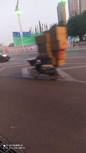 电动车拉这么多东西行驶在机动车道上,这东西重不重看到这么多,给人感觉视线都不好