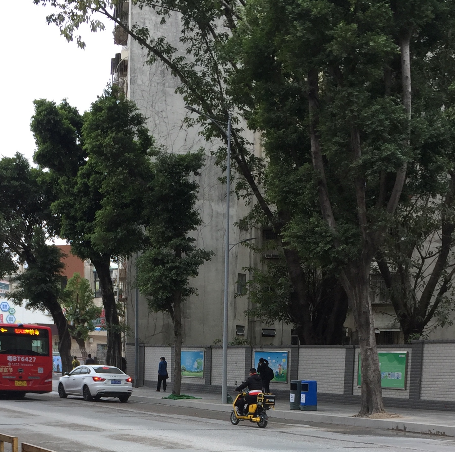 骑电单车的市民不戴头盔,在机动车道上骑行。