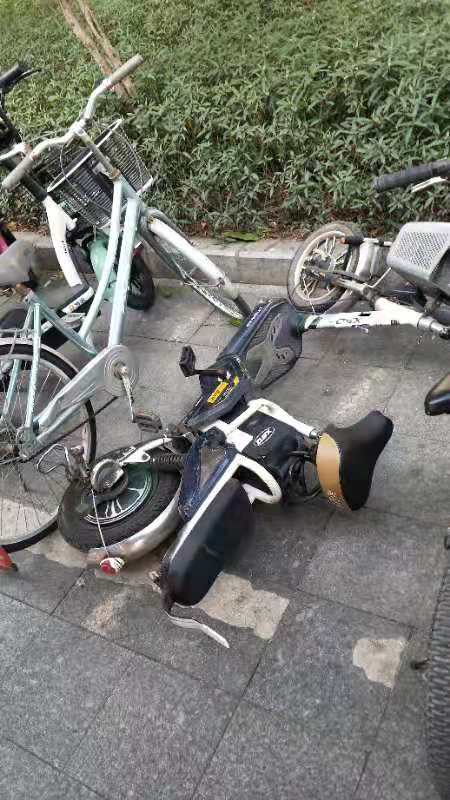 【随手拍】电动车倒在地上,把傍边的自行车也打倒了,没人把它们托起来