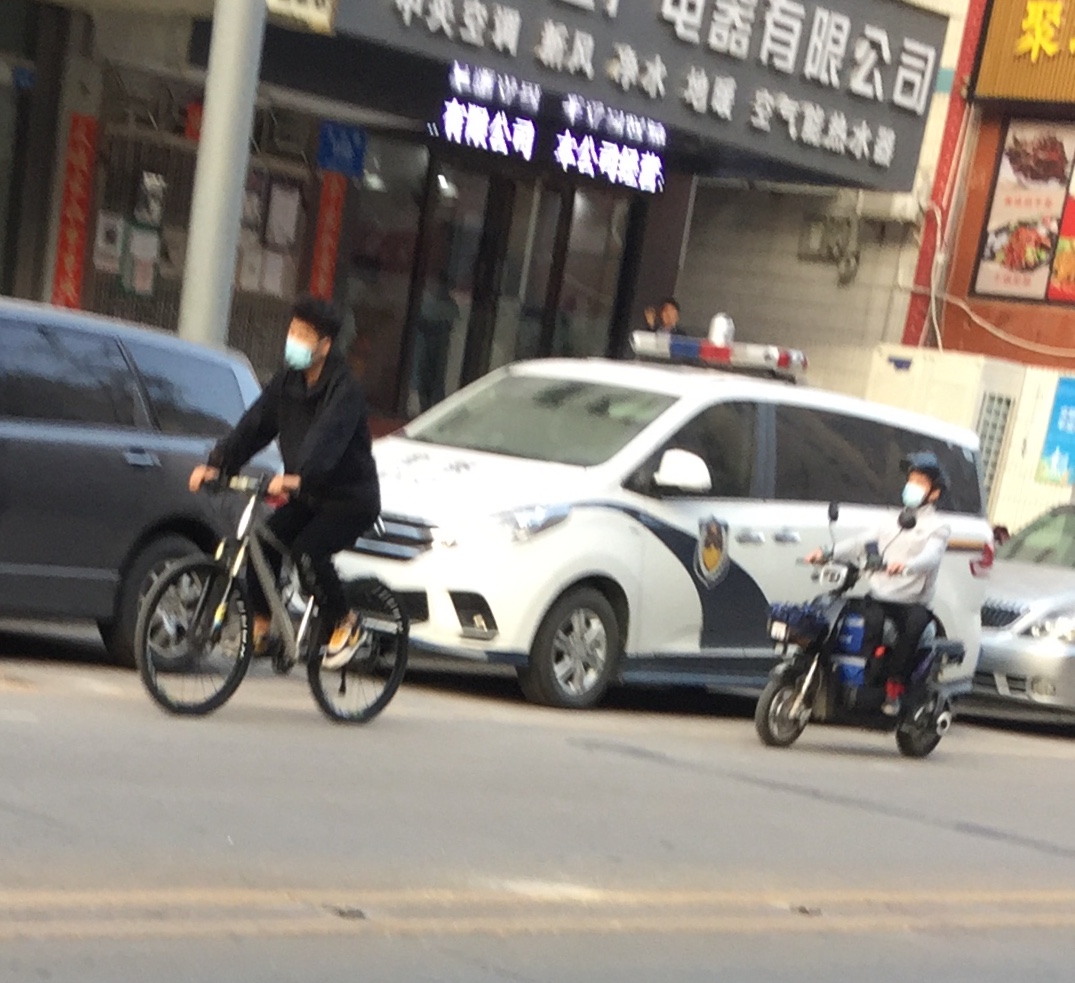 骑电单车的市民不戴头盔,在机动车道上骑行。