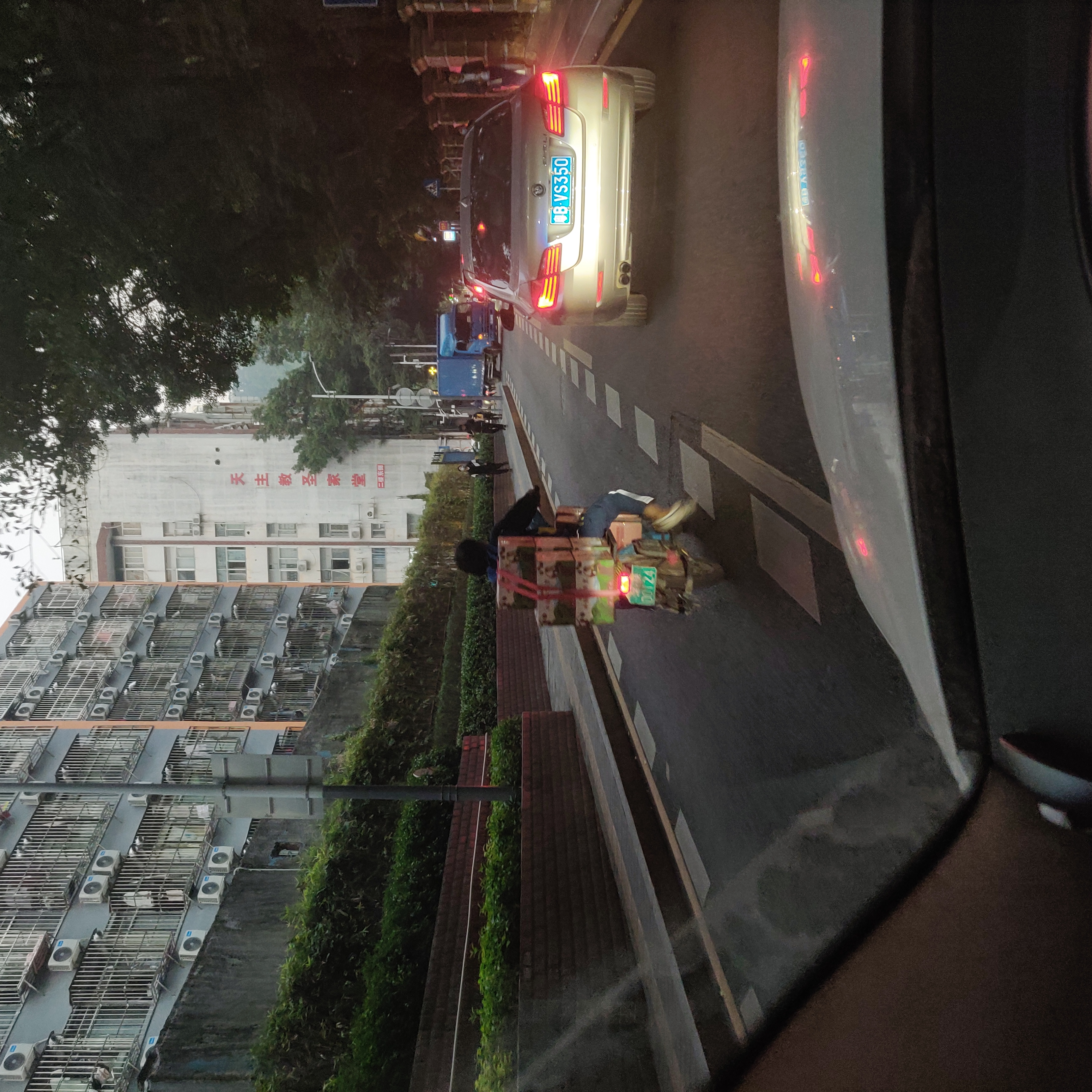 这个快递员骑车有点猛,在机动车道逆行呢。