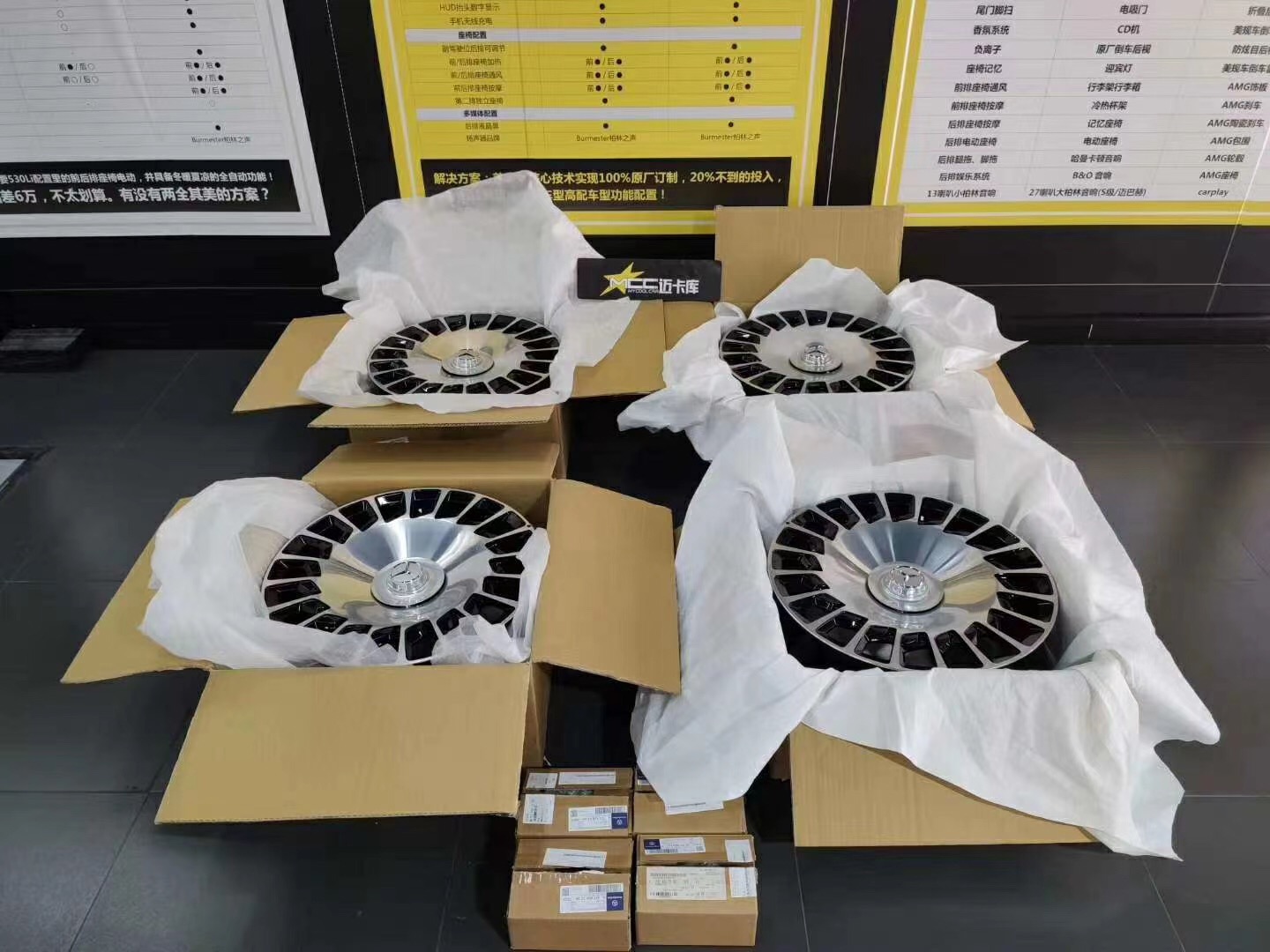 以迈巴赫S560刀锋锻造轮毂为例,内含2个前轮毂+2个后轮毂+4个轮盖。