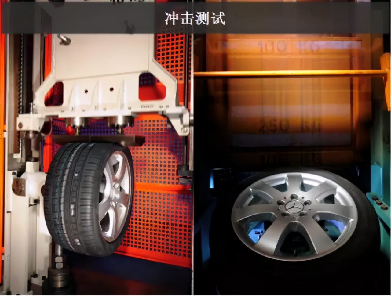 模拟车辆高速行驶遇到坑洼路面时的剧烈冲击和侧向遭遇的剧烈撞击。该测试包括径向冲击和轴向冲击:径向冲击后不能漏气,轴向冲击后不能断裂,确保车辆行驶安全。