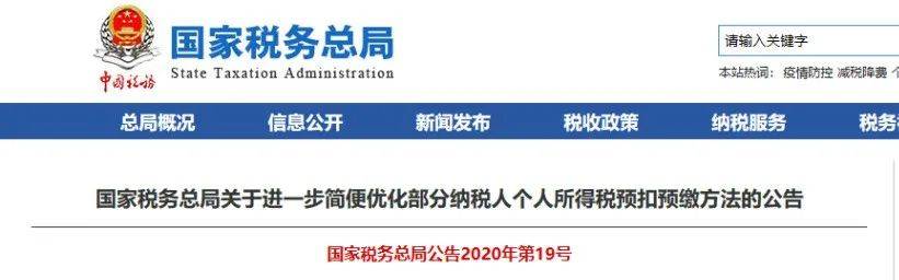 《国家税务总局关于进一步简便优化部分纳税人个人所得税预扣预缴方法的公告》 自2021年1月1日起施行。