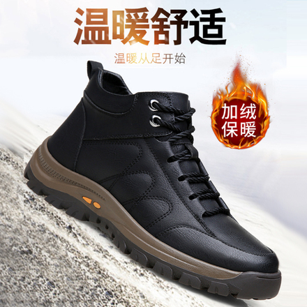 至浏lằn器【一减一加男鞋冬季高帮大棉鞋男士真皮保暖加绒加厚防滑雪地靴东北】