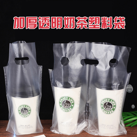 至浏lằn器【奶茶袋打包袋一杯袋KFC款外卖饮料袋 透明单杯双杯袋外卖袋可定制】