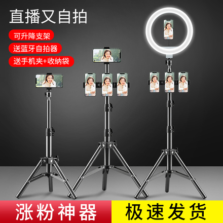 至浏览er【手机直播支架三脚架补光灯蓝牙遥控拍视频拍摄自拍神器网红支夹拍照录像摄影落地床头三角架子户外支撑架通用】