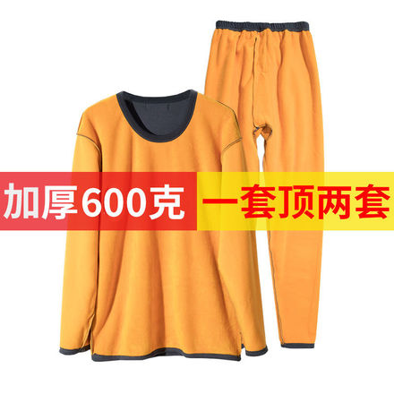 至浏览er【加绒加厚男士保暖内衣套装黄金绒中老年秋衣秋裤男圆领巨厚黄金甲】