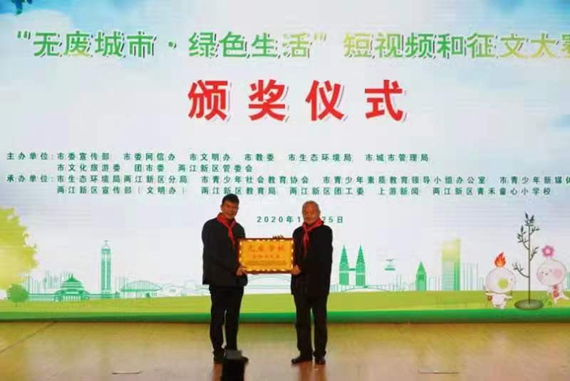 12月25日上午,“无废城市·绿色生活”短视频和征文大赛颁奖仪式在两江新区青禾童心小学校举行。3个多月以来,从金山小学到巴南汉海海洋公园,从高科集团团支部到三色东方王榭幼儿园,从龙海社区青少年之家到青禾童心小学校......从儿童到少年、再到青年,“无废城市·绿色生活”短视频和征文大赛已走过100个“无废细胞”创建地,收到上万个短视频和征文作品。不知不觉中,“无废”的意识已在重庆这片大地上播下万千种子,正扎根发芽。