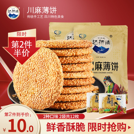 至浏览er【达折渚川麻薄饼芝麻薄饼干香脆酥點心营养零食糕點薄饼干2袋240g】