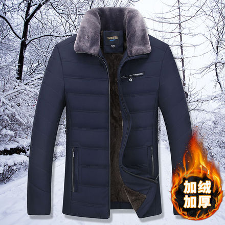 至浏łan器【棉服外套男士翻领棉衣加绒加厚商务休闲秋冬中老年爸爸装外套棉袄】