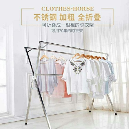 至浏łan器【不锈钢晾衣架落地折叠室内外晒衣架双杆晒被阳台挂衣架X型晾衣杆】