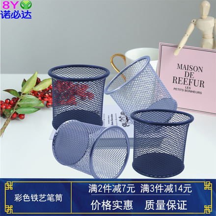 至浏łan器【彩色铁艺镂空笔筒 多功能网格金属笔筒 学生办公学习收纳筒】