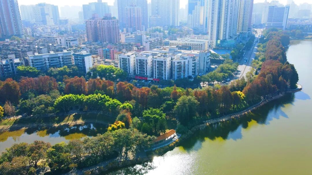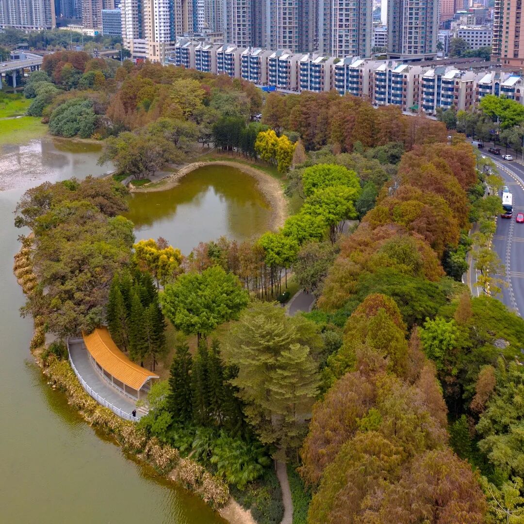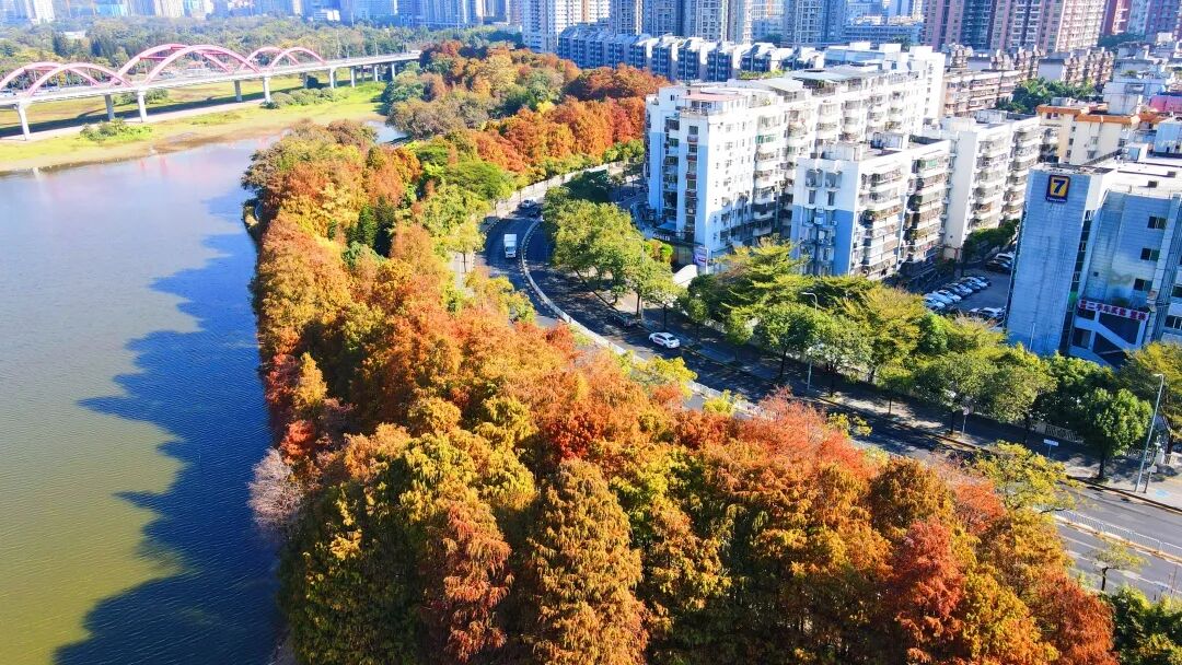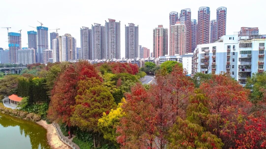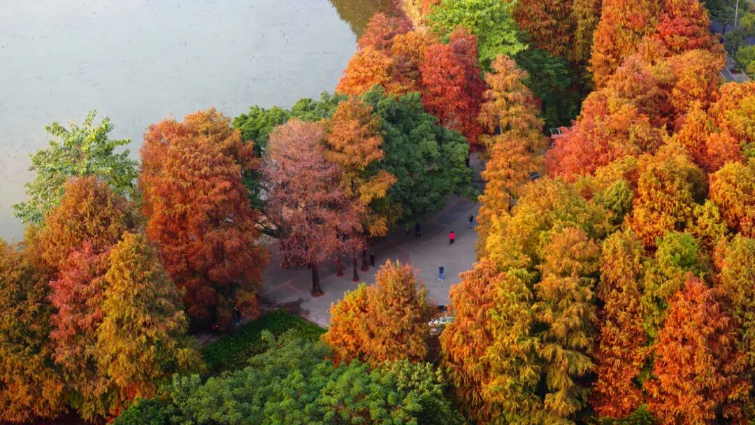 洪湖公园的落羽杉林红了