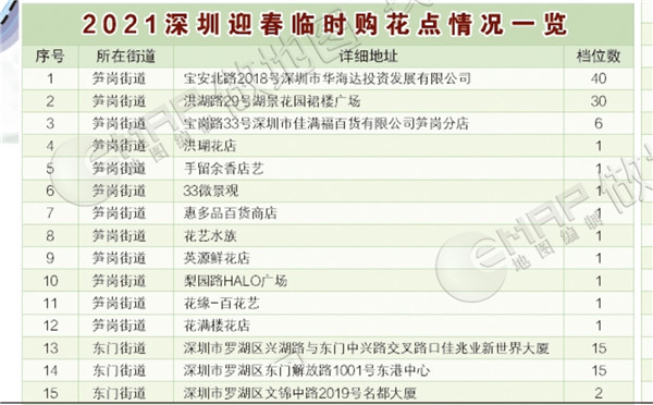 各临时购花点开办时间不晚于2021年2月2日,关闭时间不早于2021年2月11日24时,2月27日前原则上全部关闭。