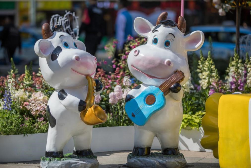 据悉,此次街头花艺结合了人民南商圈氛围和场地特点,呼应月季花“爱与浪漫”的寓意,以“浪漫之歌”为主题,提取音乐元素进行花漾形象演化和运用,将各处景观作为爱的专属乐章。在海燕广场、金光华广场、国贸广场、汇金广场、中旅大厦等节点及沿街绿地点、线、面结合多维度地打造“邂逅”、“相约”、“友谊”、“乐章”和“花街”五大景观节点,选用颜色清新脱俗、精美新优月季作为主景,配以清新自然、甜美浪漫的花境植物,结合钢琴、大提琴、音符、风车、花瓣装置等艺术小品,打造浪漫、艺术、时尚、唯美的街头花艺景观。其中,在金光华广场还设有2021属相牛的卡通形象,在粉色的浪漫氛围里,三两一组相映成趣。