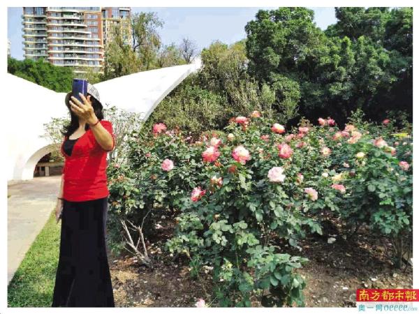 “这里的月季品种很多,希望可以拍出花的层次感。”市民代叔是一位摄影“发烧友”,每一年春天,他都会到位于罗湖的深圳市人民公园拍月季。今年3月2日正午时分,他走入园内,漫步在一垄垄花圃里,架着专业摄影设备对着花簇凹角度、按快门。他说,今年已三度进园,力求记录月季在不同时段、不同光线下的美景。