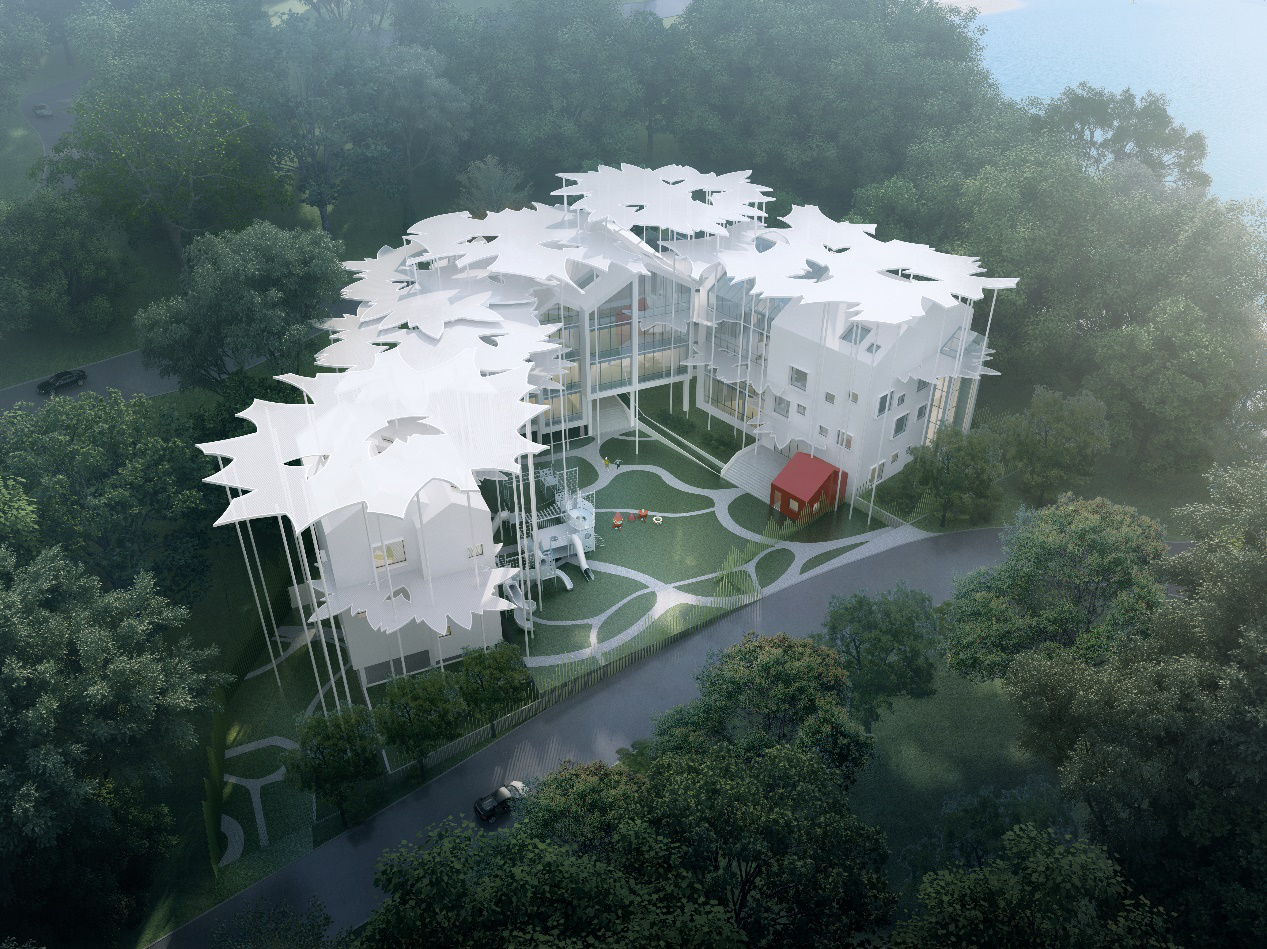 架空层的形式为幼儿园增添绿景