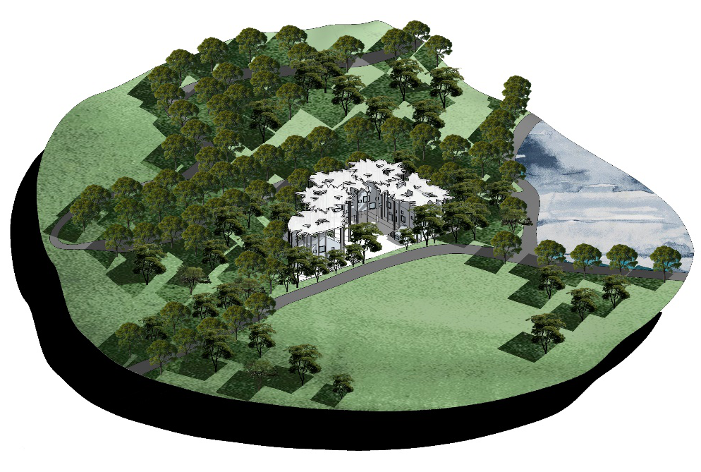 屋顶形状设计成错落的雪白叶片