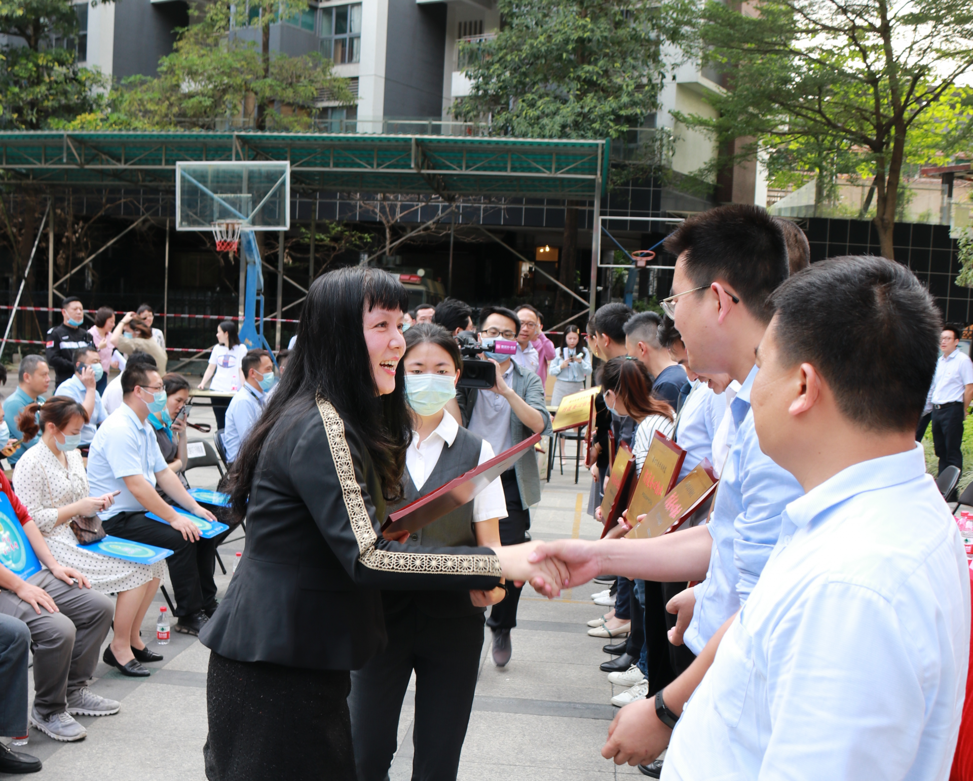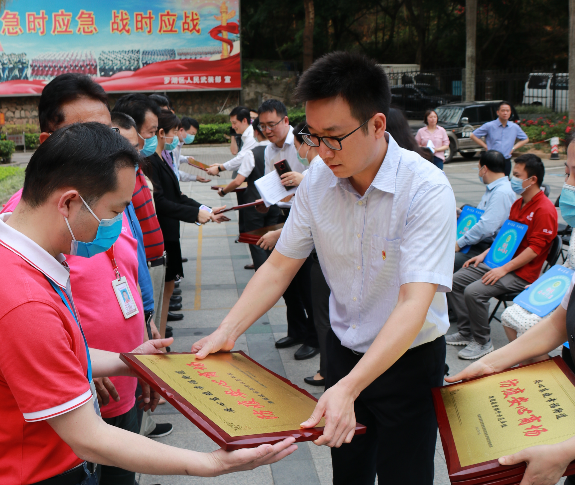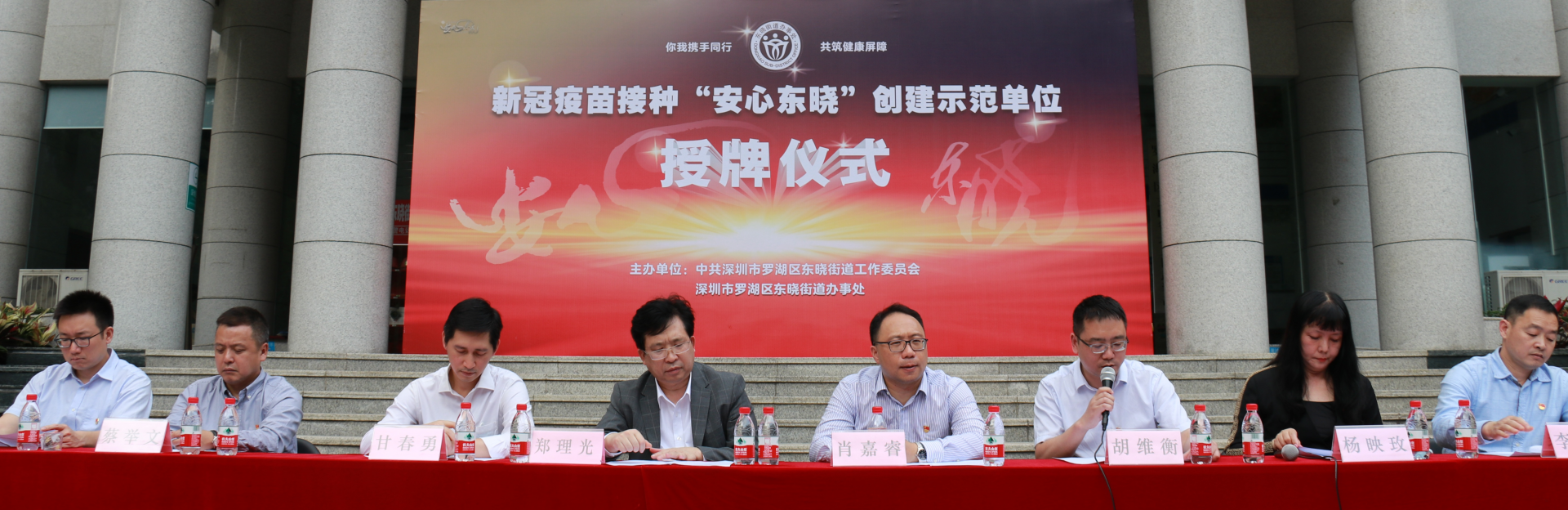 罗湖区卫健局局长、区疫情防控指挥部副主任郑理光,区疫情防控指挥部综合组副组长甘春勇,东晓街道党工委书记肖嘉睿、办事处主任胡维衡、街道班子成员参加活动,为首批36家“安心东晓”示范单位授牌。