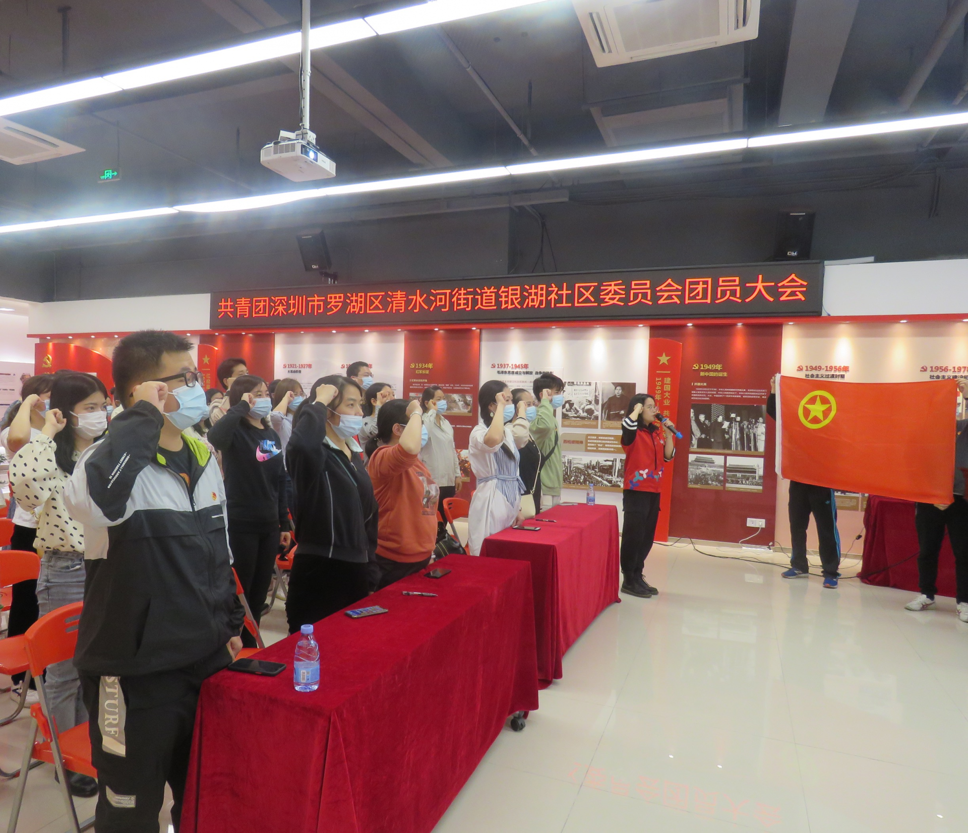 会后,在鲜艳的团旗下团员们高举右拳重温入团誓词,铿锵有力的誓词回荡在现场每一位团员心中。银湖社区团委还组织团员集体观看了《“新青年”唤醒新青年》教育片,汇聚起广大青年力量,号召广大团员青年发挥“党有号召、团有行动”的优良传统,以优异成绩为中国共产党建党一百周年献礼。