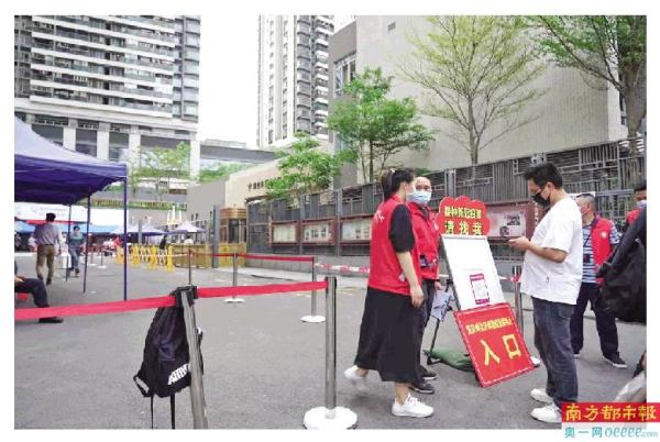 “接种后到旁边留观30分钟后再离开,一周内不要过度疲劳、不要饮酒……”在黄贝岭社区党群服务中心疫苗接种点,医护人员在打完每一针后,都会细致地向街坊讲解接种后注意事项;在接种台外围,“红马甲”们则忙碌于前来接种的市民队伍里,逐一解答市民对于接种流程的疑问;在更远处的党群服务中心外,周边街道栏杆、地面上显眼处粘贴着“黄贝岭社区新冠疫苗接种点”字眼的告示牌,不少居民根据指引来到入口处扫码、填表,现场一派井然有序的景象。