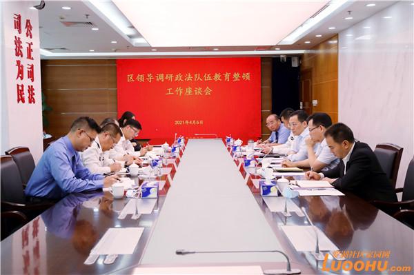 4月6日,罗湖区委书记罗育德带队前往黄贝派出所和罗湖法院、罗湖检察院调研区政法队伍教育整顿工作情况并召开座谈会,对进一步做好教育整顿工作进行部署。区领导赖武、于红军、李久祥、徐猛参加。