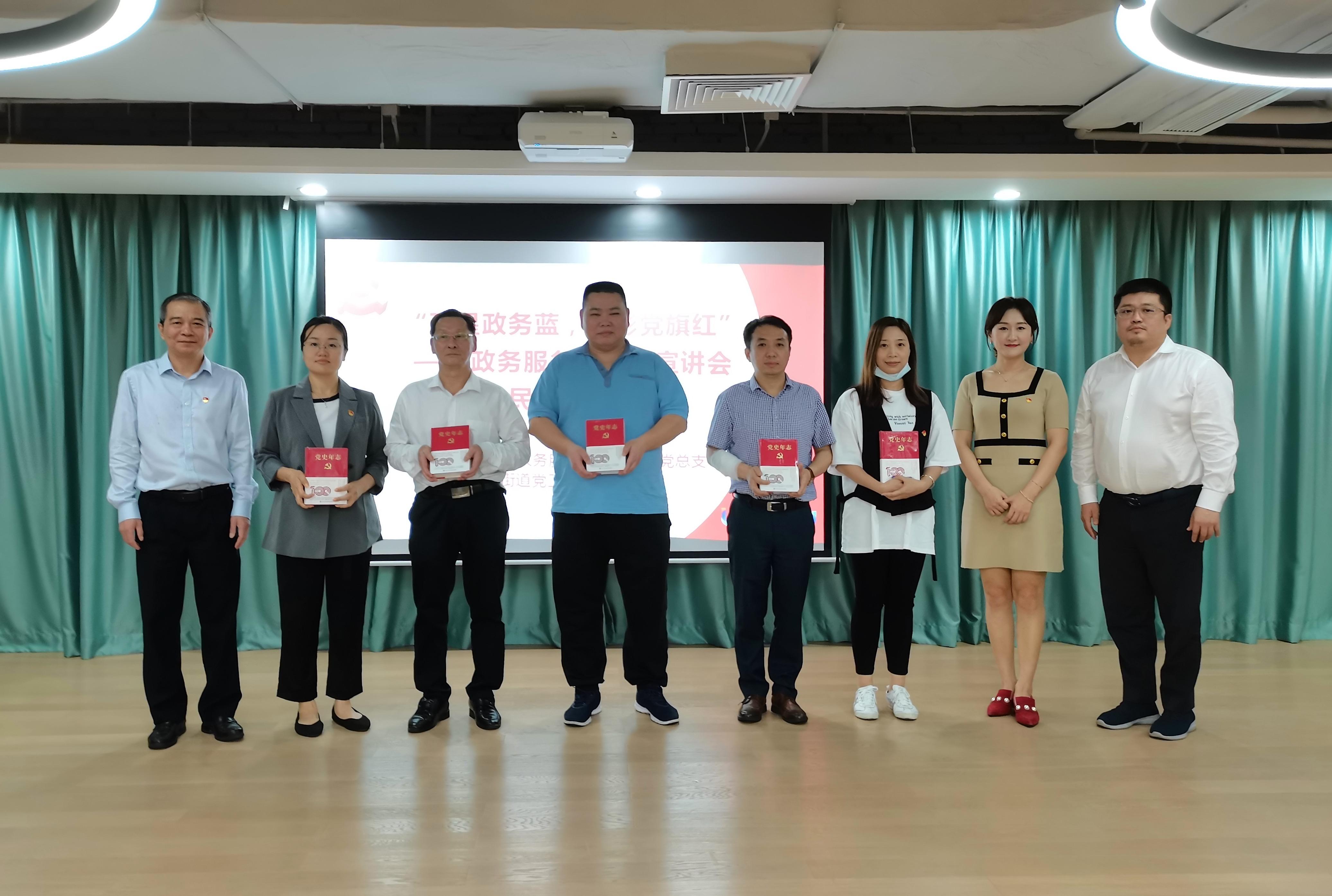 在为企业党员代表赠送党史学习书籍后,根据宣讲会前调研收集的企业需求,市场监督管理局罗湖监管局、区税务局和区行政服务大厅等部门业务骨干围绕商事登记、税收惠企政策和政务服务便民举措等企业关注的热点问题进行了点单式政策宣讲。