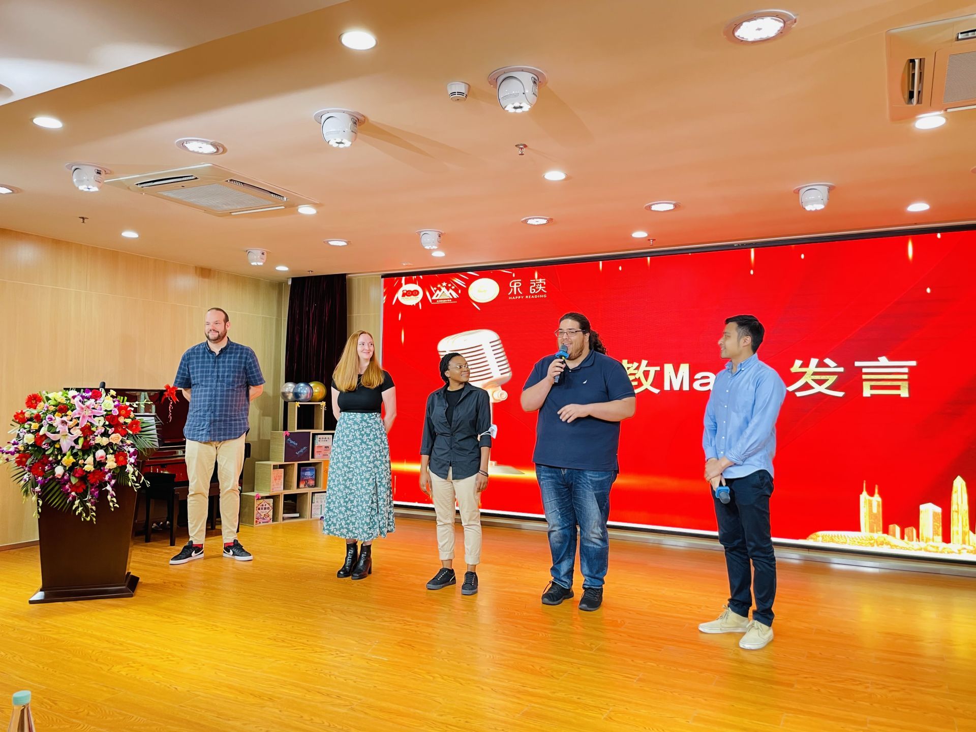 活动中还穿插了多个精彩议程。外教老师们带来了耳熟能详的经典英文歌曲,前奏一出便迅速点燃了大家的激情,熟悉的曲调让大家忍不住和声跟唱。由深圳大学学生代表带来的英文诗歌朗诵接棒登台,她们以深情的话语、标准的发音感恩生活,让人身临其境地体验到英文的独特魅力。