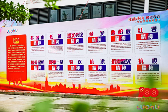 晴绿乍添现幽径,春流时泛杜鹃香。徒步路上的风景也十分迷人,引得队员们不时驻足观赏。主题徒步活动总路线约5公里,穿越山道、河道、绿道和梧桐小镇,并设置8个合影打卡点与8大红色任务。其中一个任务点中,青年队员们在梧桐山大门合唱《我和我的祖国》,表达对中国共产党百年华诞的祝福,各组参赛队员都以实际行动接受党性锻炼和红色精神洗礼。
