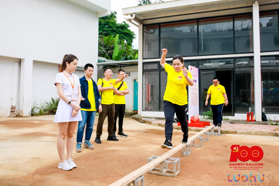 凝心聚力勇攀登,勠力同心携梦行。“长征精神大闯关”包含“勇往直前、绝地逢生、不畏险阻、战无不胜”四个游戏。队员们依次走过独木桥、匍匐“草地”,各支队伍携手共进,在挑战闯关游戏环节中充分展现奋发向上的精神风貌和紧密协作的团队精神,营造团结、拼搏、活泼的青春氛围。最终黄队队员脱颖而出,率先完成闯关游戏,进入主题徒步环节。
