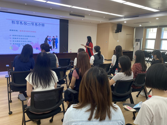 本次活动邀请了专业形象设计师、礼仪金牌导师张慧敏老师讲授文明礼仪知识。张老师从礼仪的内涵出发,对形体礼仪、形象管理等方面进行了讲解,从坐姿、站姿、微笑等日常礼仪进行了演示和指导。