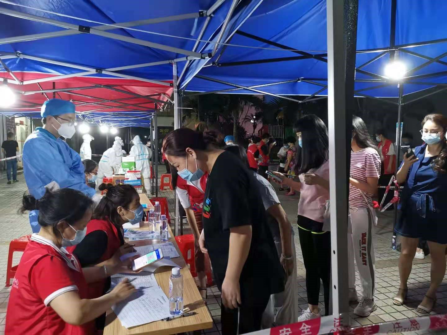 5月26日,翠竹街道涉盐田港区从业人员居住楼栋全员第一轮核酸采样工作启动,通过“线上+线下”宣传发动和“白天+晚上”加班加点方式,安排社区工作者线上提前发送短信告知居民核酸采样时间、地点等信息,各社区干部带领社区网格员以层为单位,挨家挨户上门摸排,分批次动员居民下楼进行核酸采样,志愿者在现场维持秩序,引导老人、孩子优先检测,并提醒市民接种疫苗24小时内不得进行核酸采样,确保核酸采样工作平稳有序开展。
