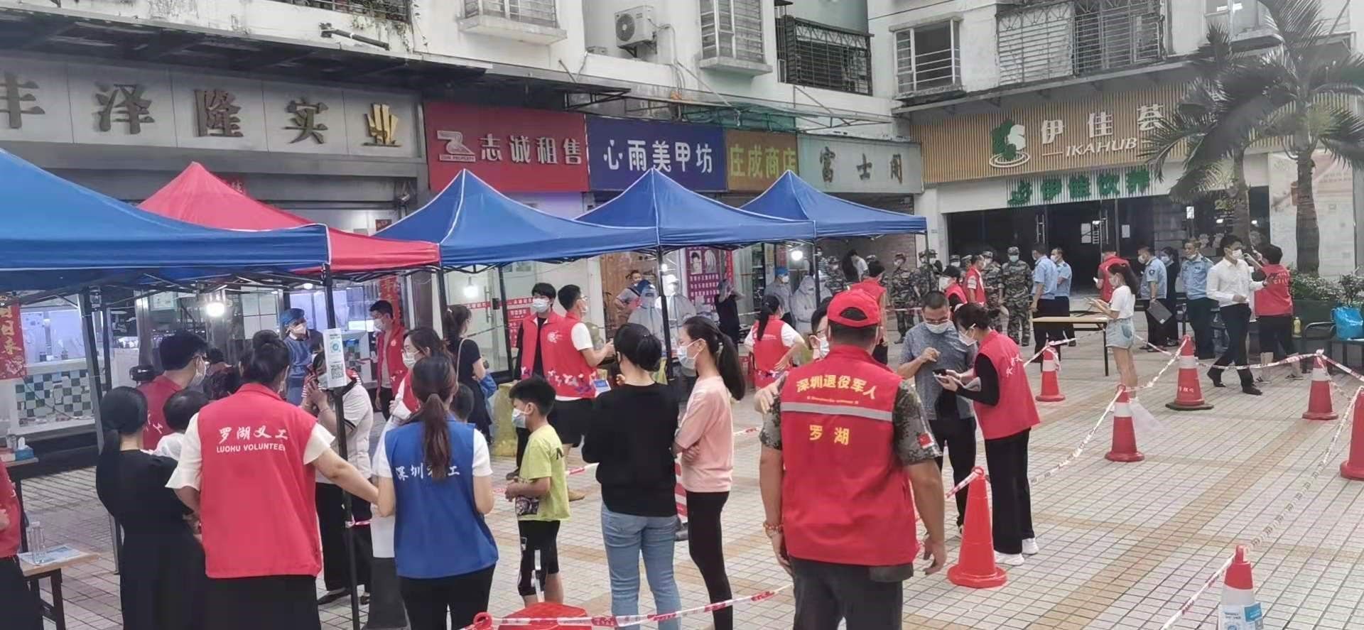 5月29日当天,翠竹街道涉盐田港区从业人员居住楼栋全员第二轮核酸采样工作正式启动,翠竹街道退役军人积极吹响“集结号”,主动前往富士阁采样点协助社区工作者,参与扫楼摸排和居民核酸采样引导等工作。此外,为感谢医护工作者和社区工作人员的辛勤服务,除翠达社区外,新村社区一采样点也收到了爱心市民送上的慰问水果,布吉农批市场一冰店还为翠竹街道核酸采样点提供了免费冰块援助,各方齐心协力,有力助推翠竹街道疫情防控工作高效开展。依托第一轮核酸采样的丰富经验,以及采样点支援力量的不断扩大,翠竹街道涉盐田港区从业人员居住楼栋全员第二轮核酸采样预计于5月30日下午实现清零。