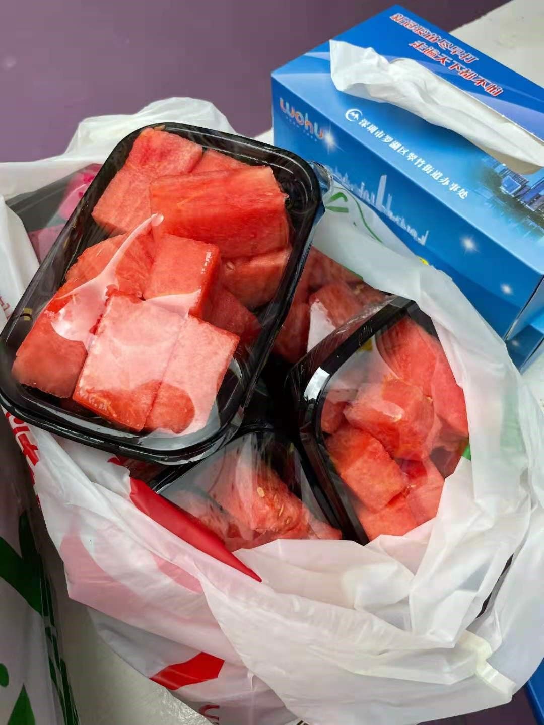 夏日炎炎,骄阳似火。5月29日,罗湖区翠竹街道翠达社区一核酸采样点收到了一份特别的外卖,有爱心市民通过外卖平台,为该采样点的医务人员送来两袋慰问水果,并备注了这样一段话:“给医护人员的降温水果,请挑选优质水果。谢谢,请全部洗干净分装成20+以上份。”