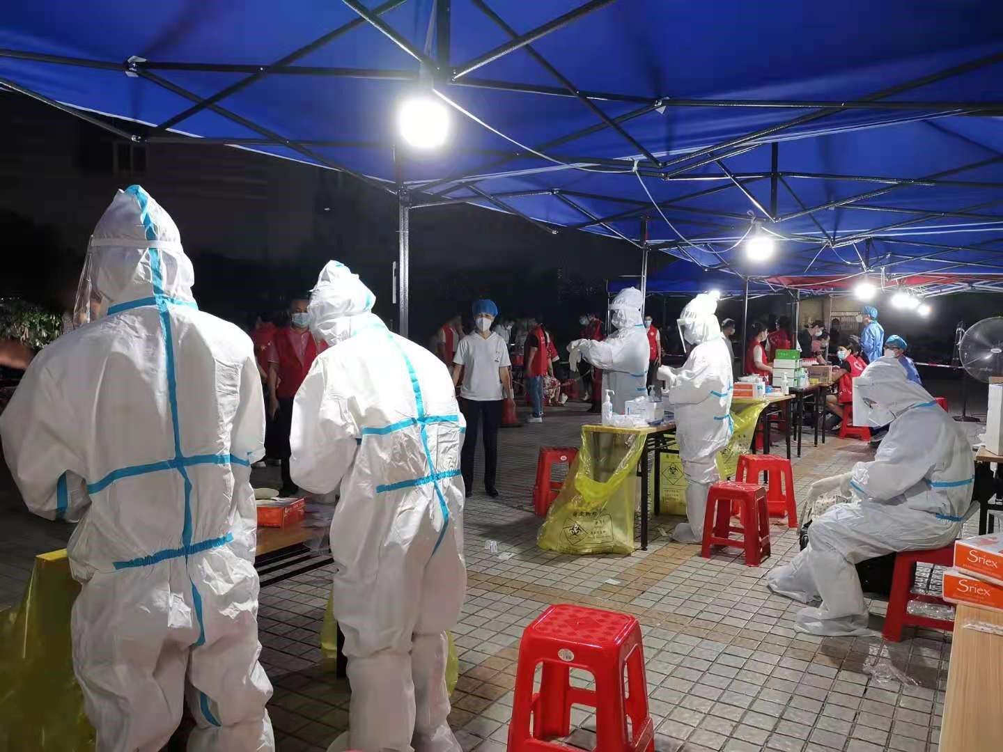 据悉,“5·21”疫情发生以来,翠竹街道全体干部带领医护人员、社区工作者、网格员等紧急响应,在辖区迅速设置7个采样点,加班加点开展“翠竹街道涉盐田港区从业人员居住楼栋全员核酸采样”工作。按照市委市政府、区委区政府要求,七天内,翠竹街道需为辖区19个楼栋共计5000余人完成三轮核酸采样。