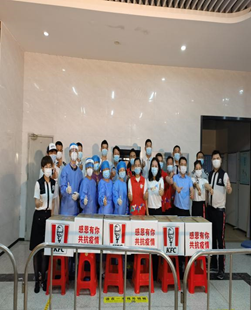 直至次日凌晨一点半,当日检测工作全部完成,在得知社区工作人员晚餐还没解决时,辖区内企业“深圳市罗湖区方块西点面包店和金山肯德基天使餐厅”连夜为奋战在抗疫一线的人员送上牛奶、豆浆和面包,同时代表企业感谢社区工作者不辞劳苦,舍小家、为大家,持续加班,为构筑免疫长城做出的贡献,并向所有战斗在抗疫一线的英雄们致敬。