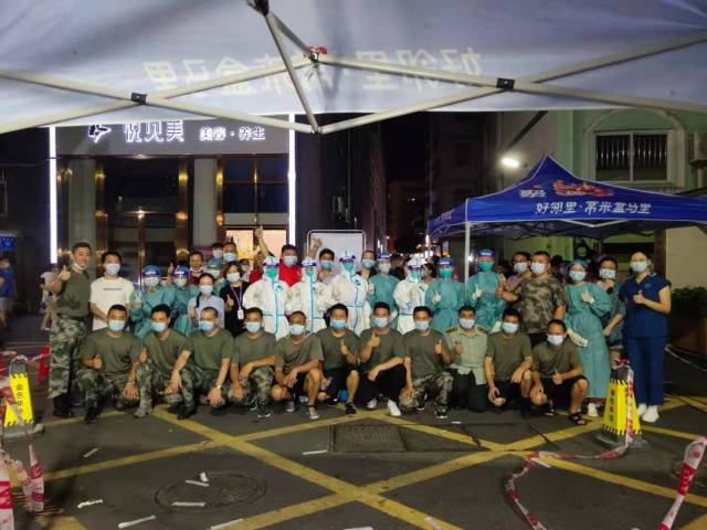 凌晨三点,莲塘社区完成当天采样任务后合影留念。