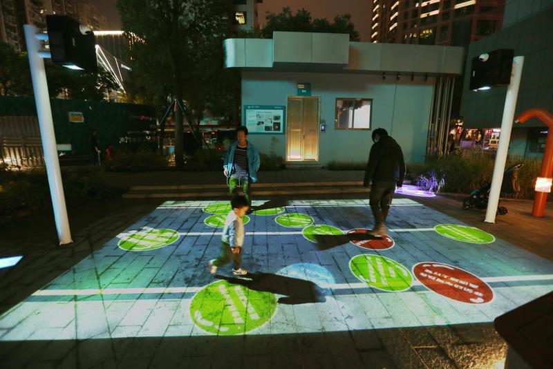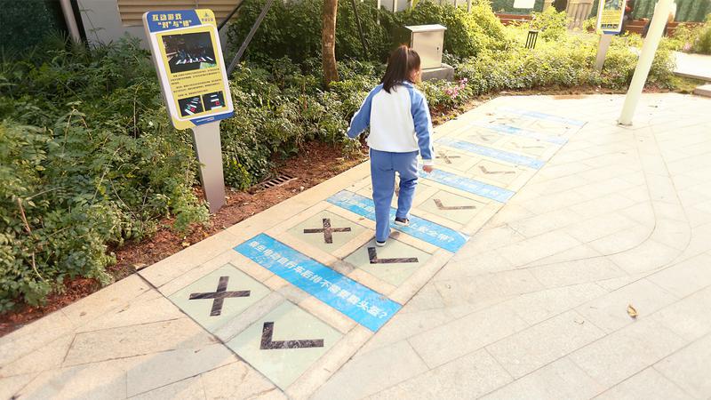 通过在公园融入科普转转乐、交通标识转转墙等设施,让市民在游玩过程中学习到“拒绝酒驾”“大车盲区”“骑行戴头盔”等知识,同时结合LED户外显示屏,播放典型交通警示视频,直观地帮助社区居民认识到漠视规则、违法出行带来的危害。利用公园中的公共空间、休闲设施等场地资源,增设交互一体机、交通陋习踩一踩装置、交通安全说吧等科技装置和趣味游戏、实践体验等场景化宣传教育,寓教于乐。除此之外,公园里还设置有车驾宝自助一体机,市民可以一站式办理多项交管业务。