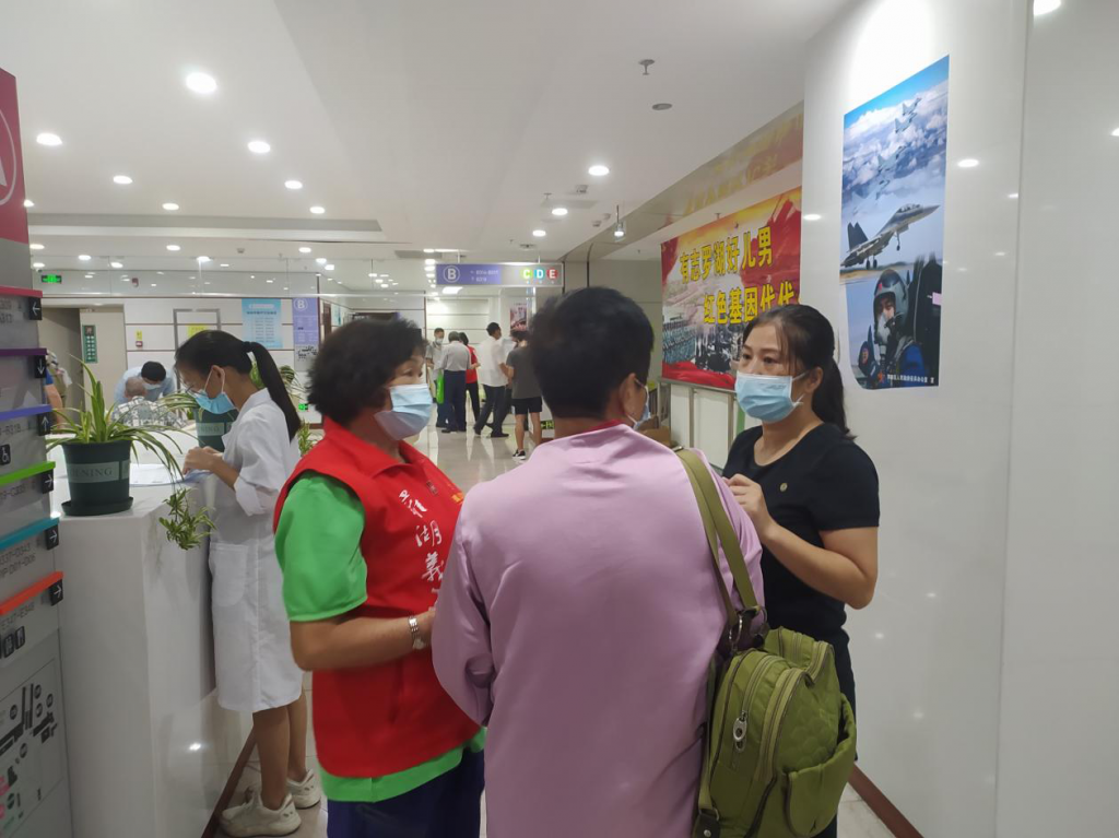 “张叔,您还有两项没有检查,从这儿向前第二个房间先查心电图”“赵阿姨,您先喝点水在这等一下,我帮你问问需要多久……”