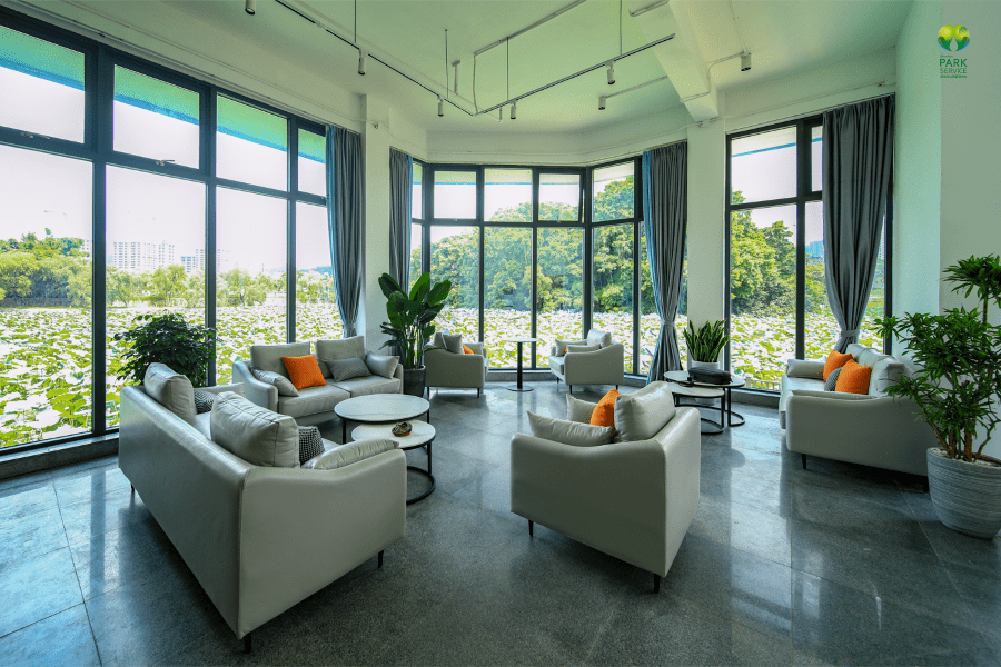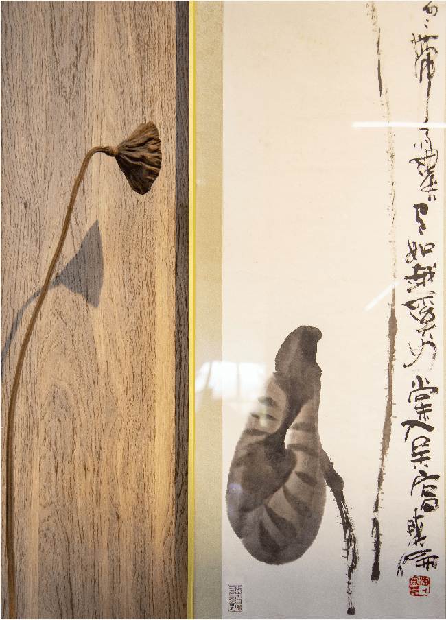 “荷”主题设计可见于书院的每个角落,空间布置、室内装潢多采用荷叶、莲子、藕等“荷”元素。