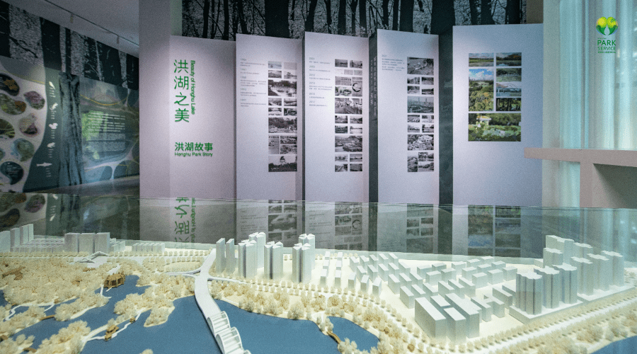 洪湖展厅内现展示着公园历史、景观特色、荷花品种以及自然生态体系,向大家述说动人的洪湖故事。