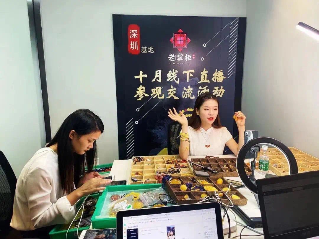 达银佳珠宝创始人吴国盛是第一批入驻该直播基地的商家。1994年出生的他拥有自己品牌的抖音直播号矩阵,坐拥60万粉丝,日均直播销售额超过百万元。“目前我们已经把重心全都放在直播电商了,选品、直播、运营都一起参与策划,要在这个新兴商业模式下,紧跟时代风口,将深圳珠宝做大做强。”吴国盛踌躇满志地说。
