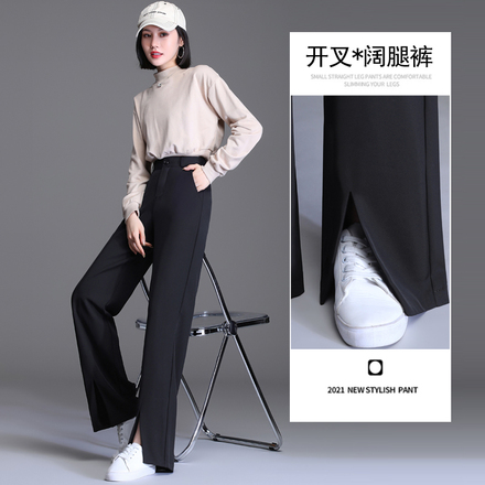 0.0¥6SEUXnG8Nrx¥ https://m.tb.cn/h.fbPWe12 黑色阔腿裤女春秋高腰垂坠感拖地开叉直筒裤子小个子显瘦直腿裤秋